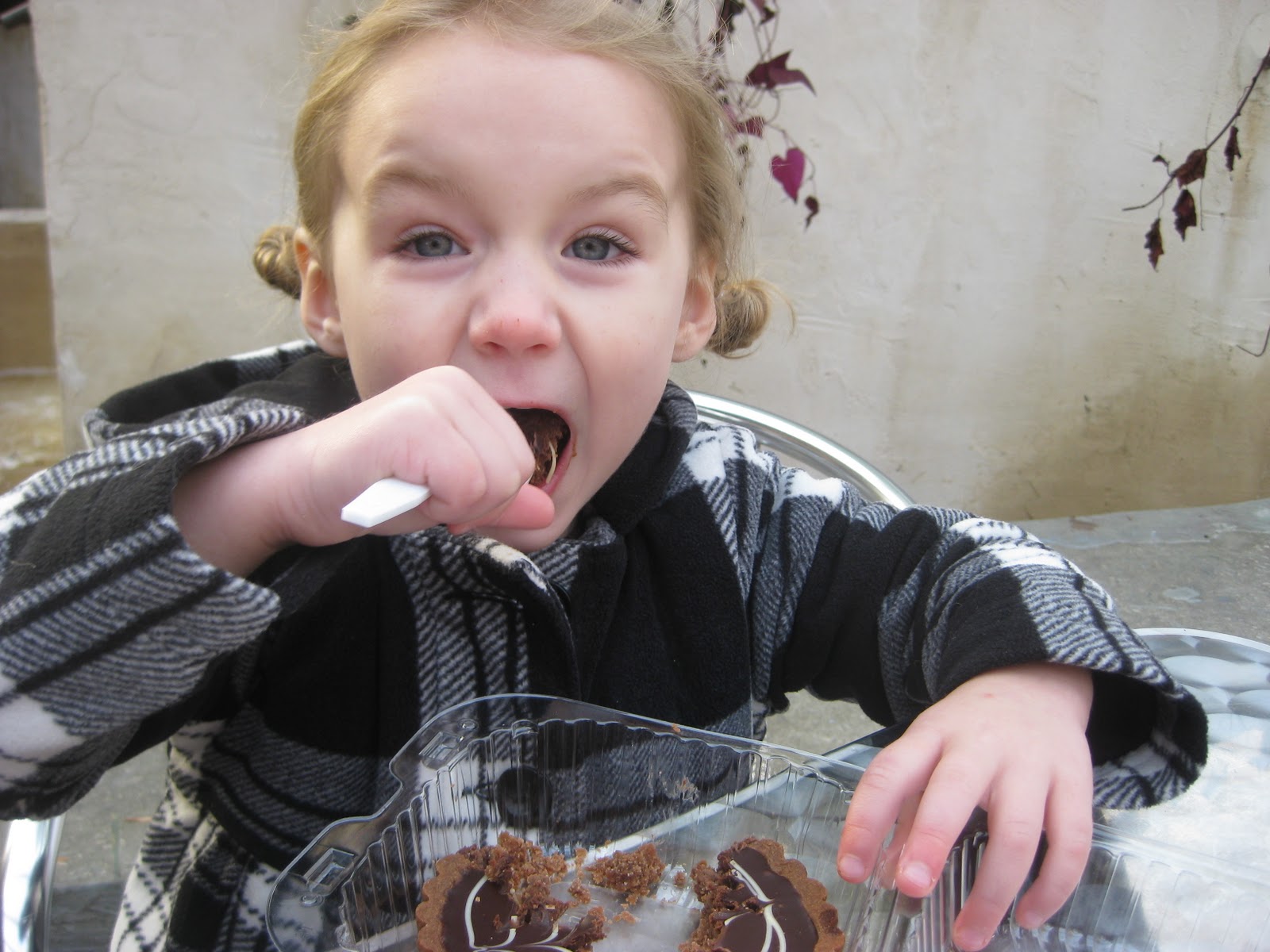 For herself, she chose a delicious chocolate tartlet, she ate almost every last crumb of this delicious specimen... (I was hoping she would have some left over to share)